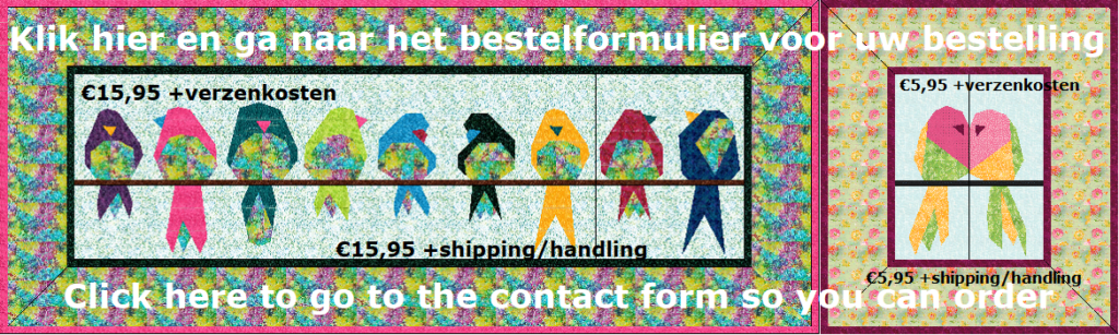 The free pattern ‘Home-Tweet-Home’ can be combined with ‘Tweet-NL-2018’ and with ‘Love-Birds’. You can buy these patterns by clicking on the image above to go to the order form. If you like to order the centimeter version: mention as pattern name Tweet-NL-CM ‘and / or’ Love-Birds-CM ‘. If you want the inch version of the pattern, please state clearly that you want to buy the inch version: ‘Tweet-inch’ and / or ‘Love-Birds-INCH’.